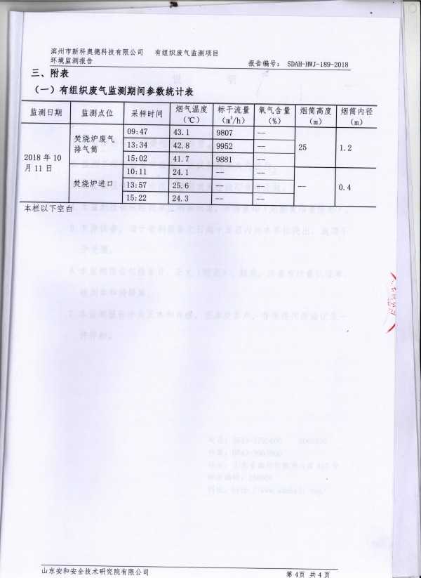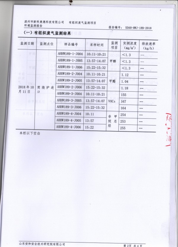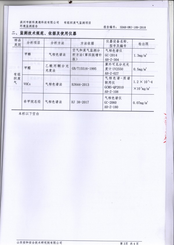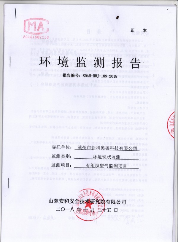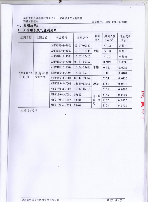 2018年10月11日,我公司邀請(qǐng)山東大成農(nóng)化有限公司和淄博市輻射環(huán)境和危險(xiǎn)物監(jiān)督管理中心的兩名專家對(duì)公司生產(chǎn)過程中真空系統(tǒng)產(chǎn)生的廢氣進(jìn)行了廢氣排放達(dá)標(biāo)性論證,各項(xiàng)污染物達(dá)標(biāo)排放?,F(xiàn)對(duì)檢測(cè)報(bào)告進(jìn)行公示。